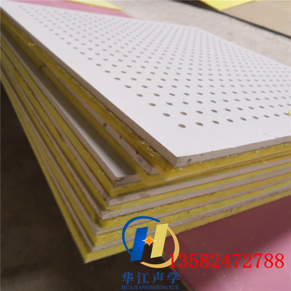 本廠專業生產厚度8mm穿孔石膏板/8.5mm穿孔石膏板/9mm穿孔石膏板/9.5mm穿孔石膏板/10mm穿孔石膏板/12mm穿孔石膏板產品尺寸:1200*2400、1200*2700、1200*3000mm,可定做其它尺寸。產品廣泛應用于:體育場館、劇場、影院、會議室、演播廳、工廠、學校、圖書館、家庭影院、琴房、歌廳、錄音室、機房、會所等對吸音降噪有要求嚴格的場所